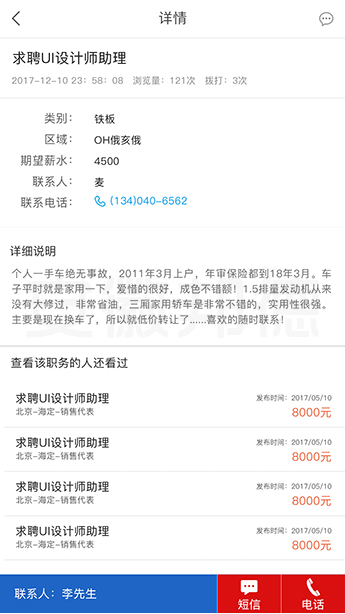 美国咖,美国最大的华人分类信息手机客户端,海量华人生活信息免费查询发布。招聘求职,征婚交友,房屋租售,生意转让,二手买卖,二手车辆,电召车,酒店旅馆,求助爆料,餐饮娱乐,新闻,生活民便服务,汇聚大量个人和商家信息等等。 招聘求职:真实靠谱,招人放心,入职安心;买房卖房:租房找房,合租分租,简单快捷;极品豪车:新车旧车,代驾顺风,应有尽有;闲置物品:随时换钱,省钱神器, 购物有理;美食娱乐:各式餐馆,优惠打折,实在推荐;生活服务:移民入籍,装修通渠,尽责贴心;求助问事:吐槽揭发,情感话题,真实爆料;征婚交友:相约你我,婚恋佳缘,非诚勿扰。美国生活服务大全,让您生活更简单方便。邦德开发为客户提供APP效果图设计,APP接口开发,APP程序开发和数据库开发,每位客户均按照需求提供定制设计开发,签订合同,分期付款,并提供完善的售后技术支持。以下APP案例效果图我们为了防盗打了水印,APP案例可提供演示和详细功能开发清单,详细内容可以咨询邦德开发客服人员微信!